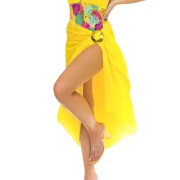 Pareo šatka D95CH1 1 SELF - žltá - z mäkkej vzdušnej tkaniny - odolná voči UV žiareniu - nemačkavý materiál - zapínanie na trblietavú pracku