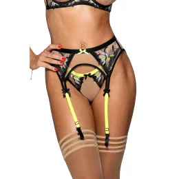 | Exkluzívny podväzkový pás s vyšívaným čiernobielym motívom je jedinečným návrhom, celok dopĺňajú neónovo žlté doplnky. Dokonale obopína a zvýrazňuje pás a zaoblenie bokov. |