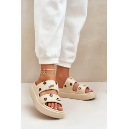 Piankowe Klapki Damskie Z Przypinkami Beżowe Ravanala