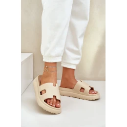 Piankowe Klapki Z Wycięciami Beżowe Neladith