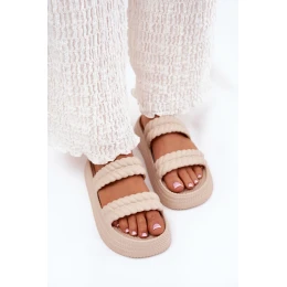 Piankowe Lekkie Klapki Damskie Na Platformie S.Barski ZK51-001 Beżowe