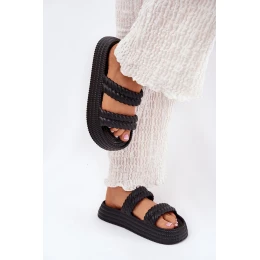 Piankowe Lekkie Klapki Damskie Na Platformie S.Barski ZK51-001 Czarne