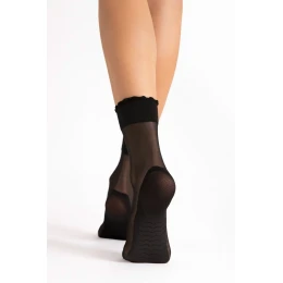 Ponožky Pico Massage 20 denier od spoločnosti Fiore sú elegantným a funkčným doplnkom, ktorý spája štýl s pohodlím.Priehľadný materiál zdôrazňuje mäkkosť a ľahkosť, zatiaľ čo jemný volánik na leme dodáva šarm.Inovatívna podrážka s masážnym efektom podporuje pohodlie pri nosení a poskytuje chodidlu jemnú stimuláciu pri každom kroku.Zosilnená päta a špička zvyšujú odolnosť výrobku, takže je ideálnou voľbou na každodenné nosenie a špeciálne príležitosti.