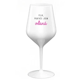 PIJU, PROTOŽE JSEM VDANÁ - bílá nerozbitná sklenice na víno 470 ml