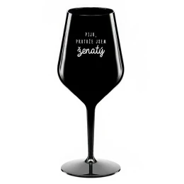 PIJU, PROTOŽE JSEM ŽENATÝ - černá nerozbitná sklenice na víno 470 ml