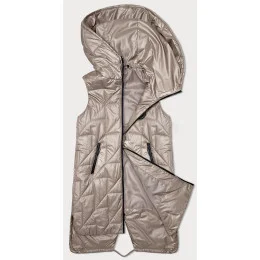 Svetlo béžová prešívaná dámska vesta s asymetrickou spodnou časťou S'West (B8237-51)