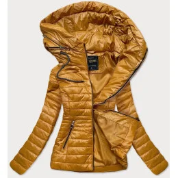 Prešívaná bunda v horčicovej farbe s kapucňou (6366)