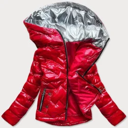 Červená prešívaná dámska bunda s kapucňou (B9562)