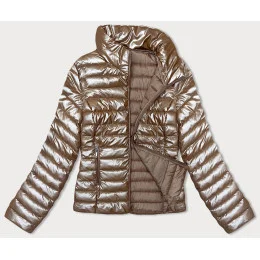 Prešívaná dámska bunda v karamelovej farbe so stojačikom (16M9110-84)