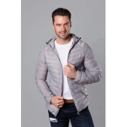 Svetlosivá prešívaná pánska bunda s kapucňou (HM112-30)