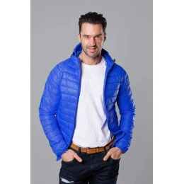 Svetlomodrá prešívaná pánska bunda s kapucňou (HM112-40)