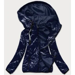 Tmavo modrá prešívaná bunda s kapucňou (BR9776)