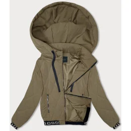 Prešívaná bunda v olivovej farbe s ozdobnými sťahovacími lemami (16M9085-84)