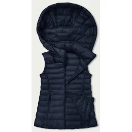 Tmavomodrá dámska prešívaná vesta s kapucňou (16M9139-215)