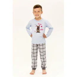 Chlapčenské pyžamo z kvalitnej bavlny, tričko s dlhým rukávom a potlačou, dlhé kockované nohavice so šnúrkou v páse a pohodlnou gumou