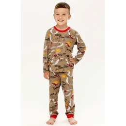 Chlapčenské pyžamo z kvalitnej mäkkej vzorovanej bavlny. Tričko s dlhým rukávom. Dlhé nohavice, výstrih, manžety a nohavice zakončené pohodlným lemom.