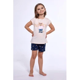 dievčenské pyžamo s krátkymi rukávmi, vyrobené z kvalitnej bavlny. Prednú stranu zdobí farebná potlač spolu so vzorovanými krátkymi nohavicami. Pyžamo je balené v krabici.