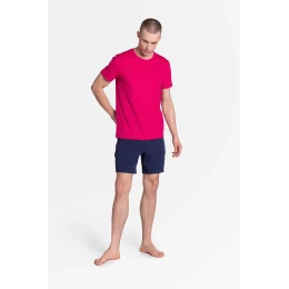 Thirst for colour - Leaf je senzačný dvojdielny pánsky pyžamový komplet z novej kolekcie známej značky Henderson, ktorý vás okamžite dostane do dobrej nálady. Vrchný diel v intenzívnej farbe, spodný diel v pokojnej tmavomodrej farbe. Prekvapujúci a veľmi módny. Malá potlač (palmy) na tričku. zloženie: 100 % bavlna.