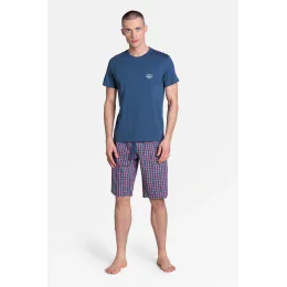 Pohodlné dvojdielne pyžamo z radu Premium značky Henderson v športovom štýle. Obsahuje tričko a nohavice po kolená v ľahkom, pohodlnom károvanom vzore. Farebná schéma vychádza z modrého základu s červenými vsadkami. Nadčasové a pohodlné. Najnovšia kolekcia. < Rozmery . veľkosť M: hrudník 90-96 cm, pás 82-88 cm . veľkosť L: hrudník 96-102 cm, pás 90-96 cm veľkosť XL: hrudník 102-108 cm, pás 98-104 cm veľkosť XXL: hrudník 108-114 cm, pás 106-110 cm