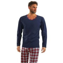 Pánske bavlnené pyžamo .Košeľa s dlhým rukávom, ktorú možno doplniť dlhými károvanými nohavicami.