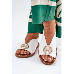 Płaskie Eleganckie Sandały Z Ozdobą Białe Iseliria