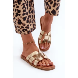 Płaskie Klapki Damskie Z Eko Skóry Złote Risamay