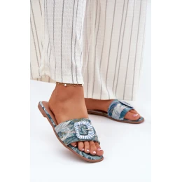 Płaskie Klapki Damskie Z Ozdobną Klamrą Niebieskie Clariola