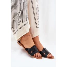 Płaskie Klapki Damskie Z Przeplatającymi Się Paskami Czarne Selaenor