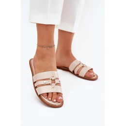 Płaskie Klapki Damskie Ze Złotym Detalem Beżowe Noroti
