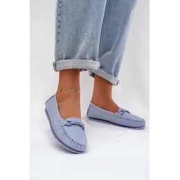 Płaskie Skórzane Mokasyny Z Ozdobą S.Barski LR51-547 Niebieskie