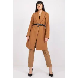 Dámsky kabát s dlhými rukávmi a zapínaním na gombíky. Vrecká na bokoch. Kabát s opaskom.