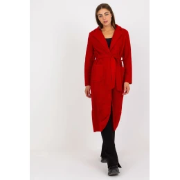 Dámsky kabát s dlhými rukávmi a vreckami s nášivkami. Kabát bez podšívky so zapínaním na gombíky a opaskom na zaväzovanie.