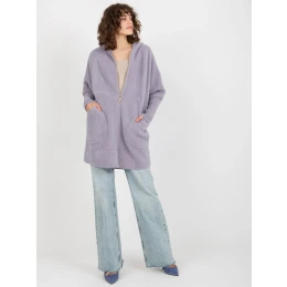 Svetlo fialový dámsky kabát z alpaky s kapucňou .