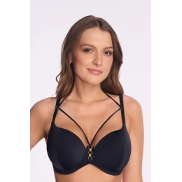 Plavková podprsenka s polovičnými košíčkami SK 253 Black je zmyselnou voľbou pre ženy, ktoré ocenia eleganciu, dokonalé nadvihnutie poprsia a módny dizajn. Vystužené tvarované košíčky s nižším strihom jemne odhaľujú hornú líniu poprsia a príťažlivo modelujú a zaobľujú prsia.