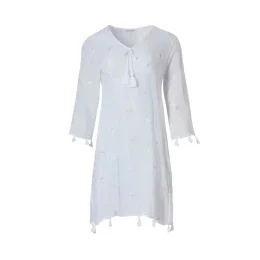 - šaty sú ozdobené kvetinovými bodkami a brmbolcami