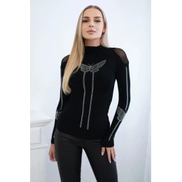 Pletená blúzka s motýľom z kubickej zirkónie čierna