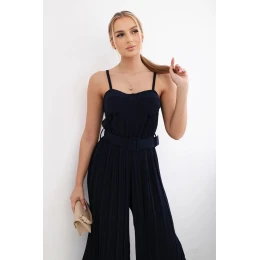 Plisovaný overal bez ramienok je elegantný a sofistikovaný kúsok oblečenia, ktorý dodáva ženskej siluete jemnosť a ľahkosť. Plisované látky sú módne a dodávajú oblečeniu jedinečný charakter a ich kombinácia s kombinézou vytvára efektný a štýlový vzhľad. Ramienka dodávajú obleku jemnosť a ženský pôvab a zároveň zabezpečujú pohodlie pri nosení. Je to ideálna voľba na mnohé príležitosti, od letných večierkov až po elegantné večery, kde chcete vyzerať štýlovo a pohodlne. Okrem toho je kombinéza aj praktická, pretože tvorí kompletný styling v jednom prvku, čo uľahčuje zostavenie outfitu. Veľkosť je univerzálna a vyhovuje ľuďom vo veľkostiach S, M a L.