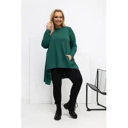 Asymetrická blůza plus size v casual stylu je ideální nabídkou na každý den, spojující pohodlí s módním vzhledem. Model s kratším předním a delším zadním dílem jemně zeštíhlí postavu a zajišťuje volnost pohybu. Hladký střih dělá z blůzy univerzální kousek, který se snadno kombinuje, skvěle padne jak k džínům, tak k legínám. Vyrobená z vysoce kvalitní bavlny s přídavkem elastanu je měkká, prodyšná a elastická, díky čemuž se perfektně přizpůsobuje postavě. Dlouhý rukáv a klasický, kulatý výstřih zdůrazňují její každodenní charakter. Praktickou výhodou jsou kapsy skryté v bocích švů, které přidávají funkčnost a moderní dotek. Blůza nemá zapínání, což zvyšuje pohodlí nošení a zdůrazňuje její volný, uvolněný styl.