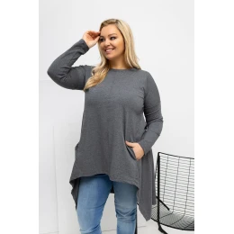 Asymetrická blůza plus size v casual stylu je ideální nabídkou na každý den, kombinuje pohodlí s módním vzhledem. Model s kratší přední částí a delším zadním dílem jemně zjemňuje postavu a poskytuje svobodu pohybu. Hladký střih dělá z blůzy univerzální kousek, který se snadno stylizuje, skvěle se hodí jak k džínům, tak k legínám. Vyrobená z vysoce kvalitní bavlny s přídavkem elastanu je měkká, prodyšná a pružná, díky čemuž skvěle padne ke figuře. Dlouhý rukáv a klasický kulatý výstřih zdůrazňují její každodenní charakter. Praktickou výhodou jsou kapsy skryté v bočních švech, které přidávají funkcionalitu a moderní akcent. Blůza nemá zapínání, což zvyšuje pohodlí nošení a zdůrazňuje její volný, uvolněný styl.