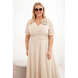 Šaty majú elastický, nariasený pás, ktorý sa dokonale prispôsobí siluete, zvýrazní jej prednosti a zabezpečí pohodlie počas celého dňa. Voľnejší lem spôsobuje, že model pri pohybe krásne splýva, čo zaručuje voľnosť a pohodlie pri nosení. Midi dĺžka robí zo šiat univerzálnu voľbu - hodia sa na každodenné nosenie, do práce, ako aj na stretnutia alebo formálne príležitosti.