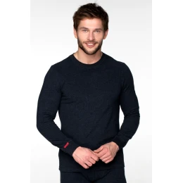 Pohodlné pánske tričko s dlhými rukávmi vo vypasovanom strihu. Melanžové hrejivé spodné prádlo z prírodných bavlnených vlákien s prídavkom elastanu. Pletenina má špeciálne termoochranné vlastnosti, ktoré udržiavajú teplo. Výnimočné vlastnosti vlákna sa dosahujú procesom dodatočného česania bavlny, nazývaným čistenie, a spracovaním priadze pri vysokej teplote. Vďaka týmto procesom výrobok zabezpečuje udržanie tepla a úplnú voľnosť pohybu.