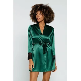 Toto negližé smaragdovej farby je vyrobené z krásneho, mäkkého saténu s ušľachtilým leskom. Hladké, zaväzovanie v páse, vždy sexy. Dlhé rukávy, ukončené čipkou. Výrobok je balený v krabičke, ideálny ako darček. Zloženie: 100 % polyester.