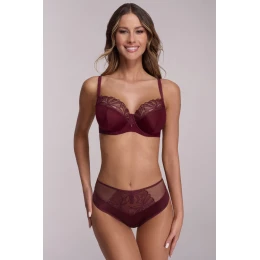 Polomäkká podprsenka AV 2196 Majesty Wine je výnimočnou voľbou pre ženy, ktoré oceňujú eleganciu a pohodlie v jednom. Sýta bordová farba jej dodáva sofistikovaný vzhľad, zatiaľ čo polomäkké košíčky dokonale obopínajú poprsie a vďaka mäkkej pene v spodnej časti ho jemne nadvihujú. Horná časť košíčkov, zdobená stabilnou kvetinovou výšivkou, hladko prilieha k prsiam a vytvára prirodzene zaoblený tvar.