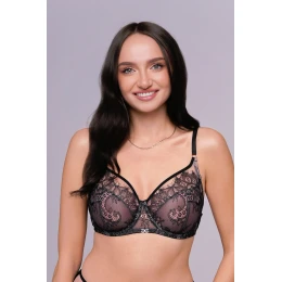 Zmyselná podprsenka s mäkkou kosticou, ktorá vychádza z osvedčeného dizajnu 1396, je vyrobená zo sieťoviny telovej farby, cez ktorú sa okolo poprsia vinie nápadná čierna čipka. Transparentná kombinácia materiálov dodáva bielizni ľahkosť a eleganciu, pričom krásne odhaľuje prirodzený tvar pŕs. Kostica poskytuje stabilnú oporu a starostlivo zvolený strih zaručuje pohodlie počas celého dňa. Ide o dizajn pre ženy, ktoré ocenia luxusný vzhľad v kombinácii s pohodlím.