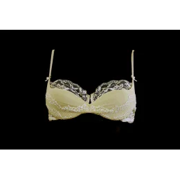 Podprsenka s kosticami, mierne vystužená, z tylu a čipky. Saténové mašle, dvojité popruhy.