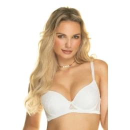 Vďaka konštrukcii s kosticami a výrobe z vysokokvalitnej tkaniny (90 % polyamid, 10 % elastan) podprsenka zaručuje pohodlie pri nosení, pružnosť a odolnosť. Nastaviteľné ramienka a zapínanie na háčik a oko na chrbte umožňujú dokonalé prispôsobenie sa siluete. Farba ecru je ideálna k svetlým outfitom a dobre sa hodí aj ako svadobná bielizeň. Je to klasická a romantická ponuka pre ženy, ktoré oceňujú spojenie funkčnosti a decentného štýlu.