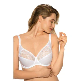 Mäkká podprsenka s kosticami, ideálny pre ženy s väčším poprsím. Horná časť košíčkov z čipky, spodná časť z dvojitej, dobre držiacej tkaniny. Ramienka nie sú odnímateľná.