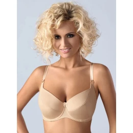 Luxusná polovystužená podprsenka Gaia 081 s kosticami vyrobená čiastočne z lesklého mikrovlákna. Vnútorná strana košíčkov je vystužená mäkkou penou a podšitá bavlneným úpletom. Popruhy sú pevné, elastické, ľahko nastaviteľné.