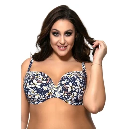 Biele kvety magnólie a sedmokrásky na tmavomodrom podklade z látky SK 114 vám pripomenú bezstarostné prázdninové chvíle. Vystužená podprsenka s plnými košíčkami dokonale podopiera poprsie a zvýrazňuje zvodné krivky. Súčasťou súpravy sú hladké tmavomodré nohavičky s ozdobnými farebnými bočnými väzbami.