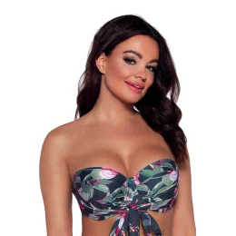 Zoznámte sa so zvodnou plavkovou podprsenkou SK 167 bardotka, ktorá zaujme exotickým kvetinovým vzorom na tmavomodrom podklade. Perfektne sa hodí na pláž aj k bazénu, zvýrazní váš dekolt a vďaka všitému širokému pásu vám poskytne oporu. Ponúka možnosť odopínateľných ramienok a flexibilitu zapínania - môžete ju zaviazať klasicky vzadu, za krkom alebo ozdobne vpredu v podobe mašle. Kvalitný úplet pripomína maliarske plátno, čo celku dodáva jedinečnú eleganciu a tropický charakter. Kombinujte ju s klasickými nohavičkami SF 167/12 alebo podprsenkami 167/5 a vytvorte si set, v ktorom sa budete cítiť žensky a štýlovo v každom letnom outfite.